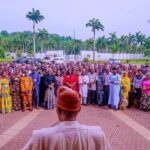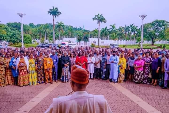 Tsohon Shugaban Kasa Muhammadu Buhari yayin da yake bankwana da ma’aikatab fadar shugaban kasa, a Abuja