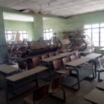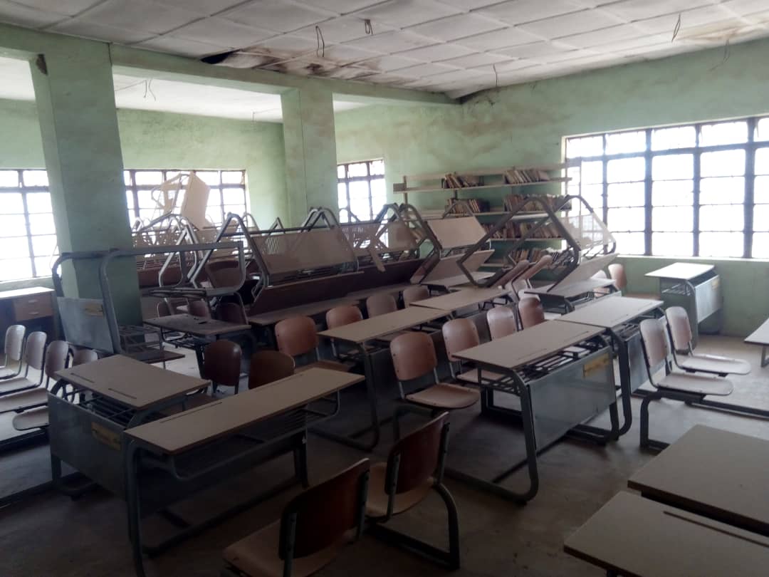 Wani sashen dakin karatu na Malumfashi, wanda ke nuna lalacewarsa