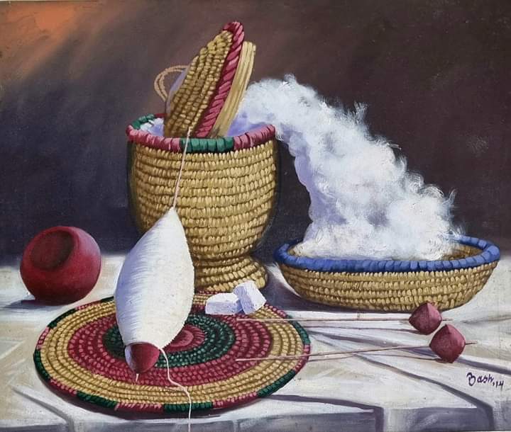 Currently in my personal office hangs three canvases containing images of stunning beauty painted by Bashir Isah Abbas, a lecturer in the Department of Art, Kano State Polytechnic. One of them, which I am sharing today in the series, is a photorealistic portrait of a lost heritage: mazari, or spindle, used to create threads mainly by women. The threads are then sold to textile weavers who will create fabrics of stunning beauty, design and durability. Long before Austrian Getzner.