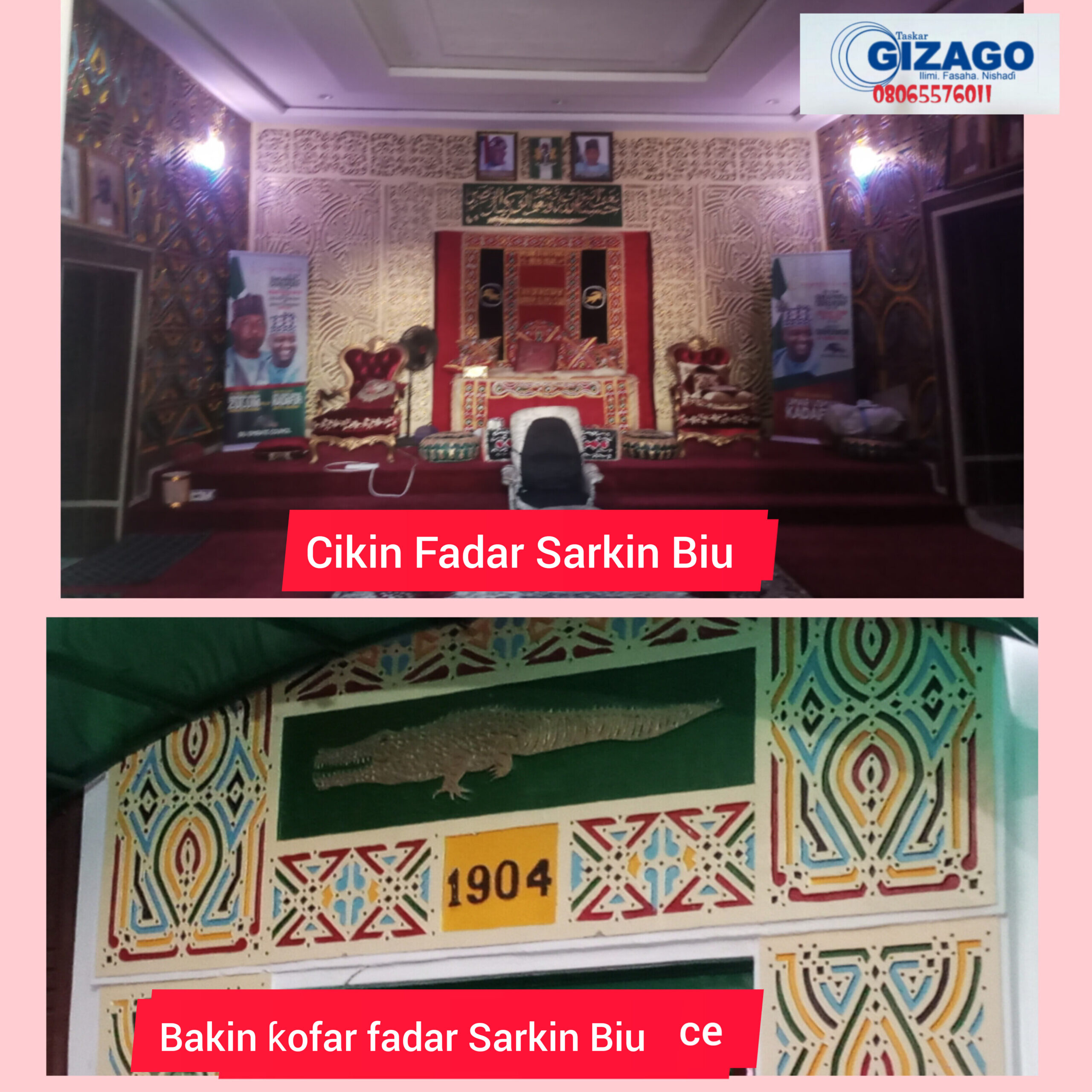 Babu shakka fadar Sarkin Biu ƙayatatta ce, wacce aka yi wa kwalliya da zayyane-zayyanen gargajiya, duk da cewa tsarin ginin na zamani ne. Ainihin babbar fadar Sarkin, an gina ta ne tun a shekarar 1904, ana dai yi mata kwaskwarima ne daga lokaci zuwa lokaci. Wani abu da ya ɗauki hankalina a fadar, shi ne hoton kada da aka zayyana a ƙofar fadar, wanda kuma shi ne tambarin Masarautar Biu. A tattaunawar da na yi da Mai Martaba Sarki, na tambaye shi ma’anar wannan hoto na kada. Ya shaida mani cewa garin Biu ya shahara da kadoji, inda a can shekarun baya, duk inda ka duba za ka gan su kuma ba su cutar da kowa. Don haka sai suka zama tamkar abokan zaman mutane a garin. “Wannan na ɗaya daga cikin dalilan da suka sanya kada ya zama Tambarin Masarautar Biu, musamman domin jaddada zaman lafiya da jarumtaka,” in ji Sarkin na Biu.