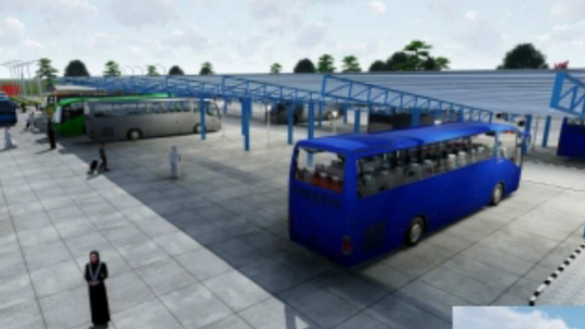 Inside the park, there is also a central mosque with ablution facilities and sufficient toilets for both men and women, to serve passengers and other users of the park. There is a dedicated restaurant section comprising several kitchens, staff offices, and a spacious dining hall for passengers, also with its own restrooms.