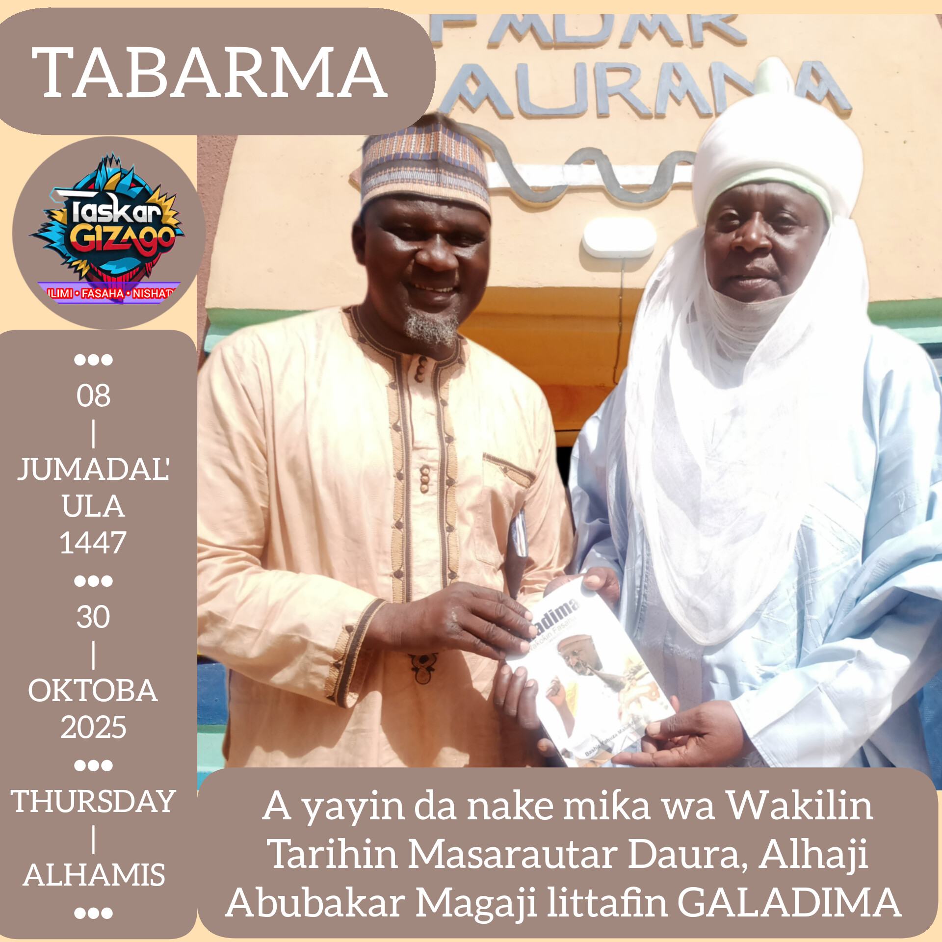A ranar Talata da ta gabata 06-05-1447 (Hijiriyya), 28-10-2025 (Miladiyya), na ziyarci birnin Daura saboda binciken wani bayani da ya shafi tarihi.