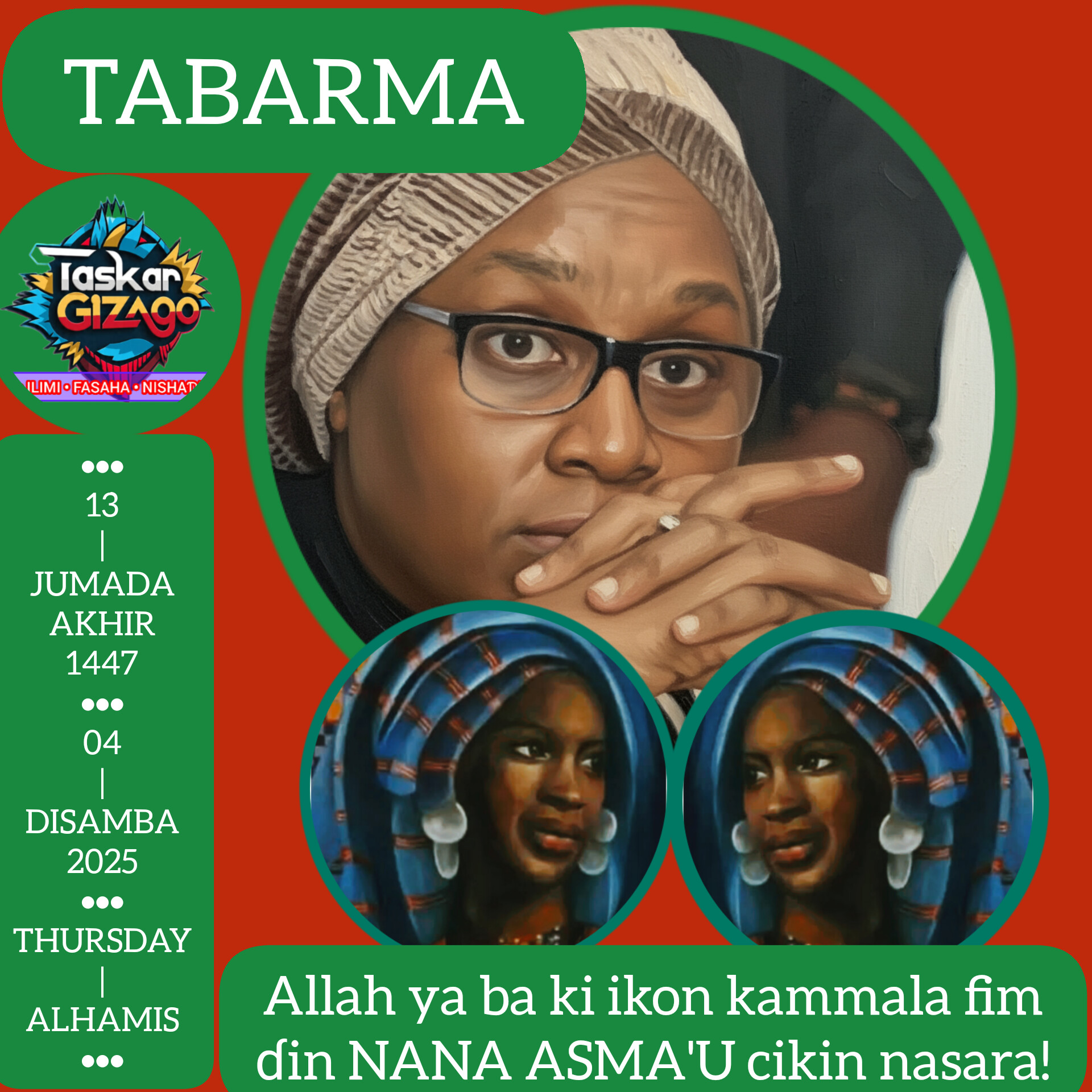 A ƙarshe, ina mai ba ku shawara da ku sirka salon gwagwarmayarku, daga fito-na-fito, maganganu marasa tabbas. Ku bari a riƙa tattaunawa a kan doron ilmi cikin haƙuri da kyautata lafazi. Ni ba Bafulatana ba ce amma ba da takobi Fulani suka kawo ni yin aikin Nana Asma’u ba – da rubutaccen tarihi ne a kanta da ayyukanta. Sannan ba su taɓa hantara ta ko iface-iface a kan me ya sa ba a yi fim a kan kakarsu ba. Hasali ma, ban taɓa zama da wani daga cikinsu da ke bambance Hausawa da Fulani ba. Hakan ta sa muka yi sha’awar aikinsu. Amma zafin kai ba ya tanƙwara mutane, sai dai ma ya ƙara tunzira su.